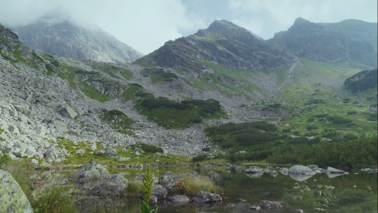 Słowackie Tatry Wysokie przywitały nas pochmurną aurą. Choć widoczność była ograniczona, mglisty klimat okazał się iście filmowy. To właśnie spowite chmurami szczyty oraz nasycona wilgocią roślinność stały się głównymi bohaterami tej miniatury filmowej. Zgaszona, chłodna paleta barw oraz celowo obniżony kontrast pozwoliły zbudować oniryczny, tajemniczy nastrój, udowadniając, że trudne warunki pogodowe mogą być największym atutem w kreowaniu autentycznych i pełnych napięcia obrazów natury.